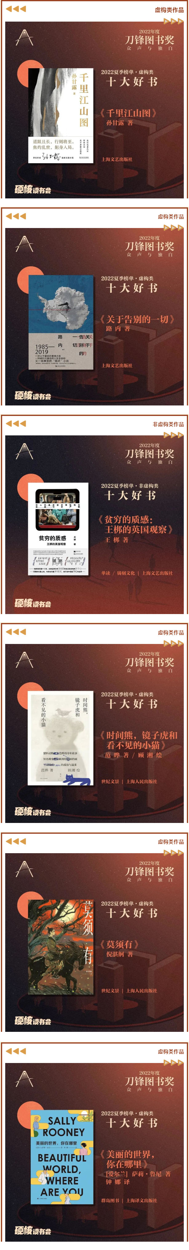 近日,《新周刊》硬核读书会发布2022年刀锋图书奖夏季榜单,分别评出虚构类和非虚构类十大好书,共20种作品入选。这些好书虽然题材类别千差万别,但写下这些文字的作者,都用热烈而赤诚的态度去向远方的世界发问,并且试着寻找答案。