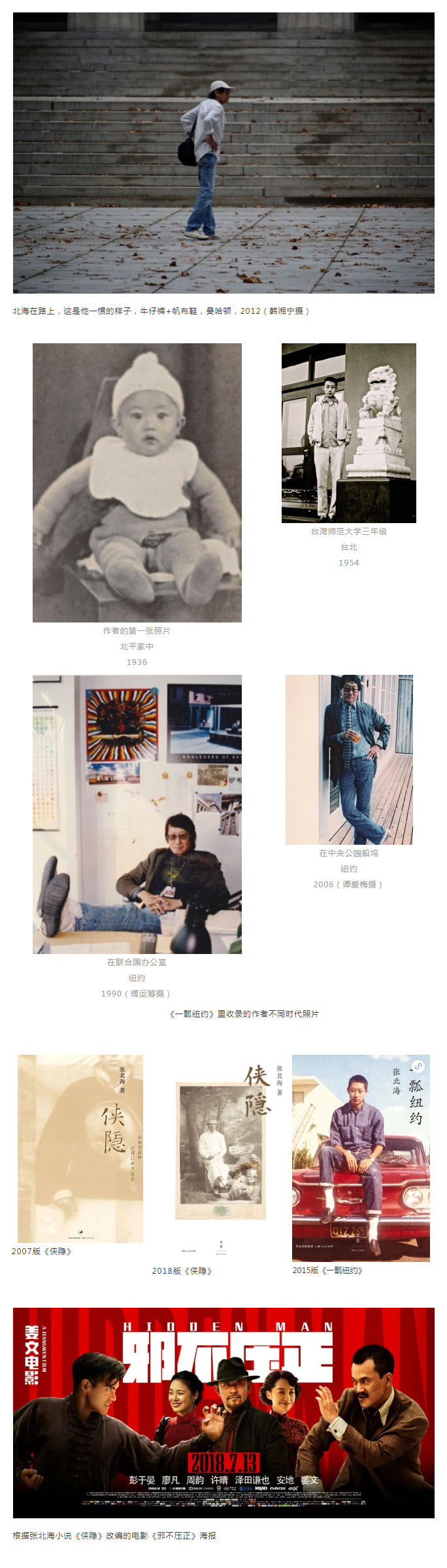 伤心的消息,总会不期而至。2022年8月17日下午,接到张姐(张艾嘉)的信息,怀着万分不舍与遗憾,纽约时间凌晨2点40分,北京时间当天下午2点40分,张北海先生(张姐的叔叔)离开了我们,“他没有太多痛苦,安静离世”,张姐说,她有幸在他离世前告诉了他“好好休息吧,我们都很爱你”。 张北海,本名张文艺,祖籍山西五台,1936年生于北京,长在台北,工读洛杉矶,任职联合国,退隐纽约,著作随缘。这是北海的官方简介,在文景众小编眼中,他是冷幽默专家,威士忌重度使用者,同时有两支妙笔,书东写西,一手绘纽约,一手描北平。他的《侠隐》在文字中复活老北平,阿城先生称赞其具有“贴骨到肉的质感”、“果然好看”,还有人说“读了侠隐,勾起乡愁”;而他笔下的纽约,确实与任何人写的都不一样,看起来边边角角,细细碎碎,更像一个有趣的老人在陪你行走街头,边走边聊,历史掌故信手拈来,担当陈丹青口中的“纽约蛀虫”。 在台湾,张北海的名气很大,这名气或许来自,叶嘉莹是他的中文老师、张艾嘉是他侄女,甚至他在美国华人圈中的“江湖地位”,1970年代起,张北海的家就是初抵纽约的华人了解这座城市的必到之地,而更熟悉他的人都明白,他的名气因其为人为文的风度,也因此阿城说,他迷张北海文字的根本原因,在于迷其风度。 文景在大约15年前开始关注华语文学,当时的编辑小美,看到了张北海在《万象》里的一些文字,找来大量文本阅读,甚为喜爱。文景在2007年推出了《侠隐》,之后又出了作者的系列散文,《人在纽约》《天空线下》《美国:八个故事》,后这些散文在2015年被辑为一册《一瓢纽约》,由北海先生自定篇目,算是一部自选集。 2018年,姜文导演将《侠隐》搬上大银幕,全城的大广告牌写满“邪不压正”,文景全员也在第一时间前往观影,并有幸邀请到李陀老师、汪晖老师做了一场影后叙谈。作为读者的我们,与作为观众的观影者,在文本与影像之间摇摆不已。汪晖老师说:“姜文电影的底色在于,他是一个记忆和感觉很充沛的人,所以主观意识极强,多半通过这种情绪把片子的合理性鼓荡起来……”身为小编,想的却是,如果全城的广告牌都写着“侠隐”该有多好!感谢姜文导演,让北海先生走入了更多读者心里。 大概从2008年开始,北海先生每两年回一趟北京,接见一众文景小编,会会老友,见老师,以及回老家。他是老西儿。《一瓢纽约》里收录的“五台山上,五台山下”,便是北海在1986年奉母之命特别回了趟五台老家,此前他从来没有回去过。2015年,他又回了一趟老家,距离上次回乡,已是三十年后,那次只是夫妻二人外加导游和司机,而这一次,是一大帮人,其中还有张艾嘉、贾樟柯和赵涛。这段故事他专门写给了那时的“正午”。 北海最后一次回京,是2018年,算好两年后再见的。2020年新冠来了。 是可以再重读一遍《侠隐》与《一瓢纽约》了。《侠隐》张北海 著“这个世界很大。大过江湖,大过中国。”姜文电影《邪不压正》原著小说阿城、王安忆、王德威、梁文道、姜文、高晓松、张艾嘉、徐皓峰 联袂推荐《一瓢纽约》张北海 著 本书是张北海的散文精选,并配有百幅彩图。这不光是一个讲美国讲纽约的文化读本,这里虽有旧物但丝毫不老,更是能体现出一个妥帖平易恬淡的人,一个写“无用之物”、视角独到、让人着迷的老嬉皮。