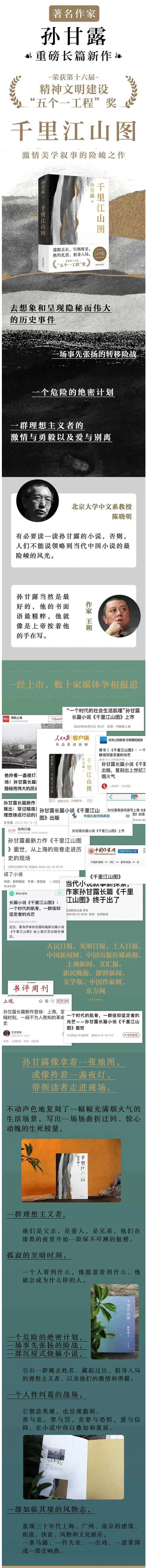 孙甘露通过《千里江山图》的写作处理了一个作家个人生活和一个广阔社会历史生活的关系。阅读革命历史题材是我们这代人文学经历、人生经历中的DNA。革命本身就是先锋的,如何让革命的先锋性获得新的有生命力的形式,就是以孙甘露为代表的这代写作者责无旁贷的。