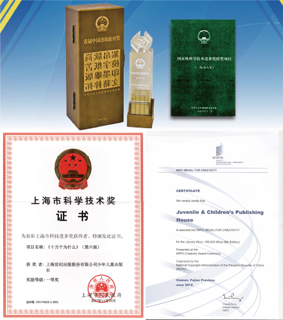 《十万个为什么》自面世以来便获奖不断。1998年,《十万个为什么》荣获了“国家科技进步二等奖”的殊荣。这是该奖项自设立以来第一次授予一套科普图书。建国50周年前夕,这套书被千千万万的读者推选出来,成为“感动共和国的50本书”中的一种。2008年,《十万个为什么》(新世纪版)被授予首届“中国出版政府奖”图书奖这一出版领域的最高荣誉。第六版《十万个为什么》已先后荣获“中国科普作家协会优秀科普作品奖”金奖、国家新闻出版广电总局“向全国青少年推荐百种优秀图书”、科技部“全国优秀科普作品奖”榜首和第四届“世界知识产权组织版权金奖(中国)”等数十项荣誉。2017年,第六版《十万个为什么》更是荣获了上海市科技进步奖的一等奖。