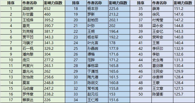 日前,百道网根据百道图书影响力数据平台监测的2022年内的传播影响力数据,独家整理发布“2022年最具传播影响力的原创作家TOP50”榜单。 上海文艺出版社作者孙甘露、马伯庸、汪民安入选。其中孙甘露位列榜单第二位。 孙甘露 中国作协全国委员会主席团委员、上海文联副主席、上海作协副主席、华东师范大学中国创意写作研究院院长、上海国际文学周总策划。著有《信使之函》《访问梦境》《呼吸》等,作品有英、法、日等多种译文,被收入海内外多种文学选集。他的写作和文学活动是当代中国文学史的重要组成部分。《千里江山图》孙甘露 著上海文艺出版社 作家孙甘露最新长篇小说。道阻且长,行则将至,《千里江山图》从上世纪三十年代的上海,打捞出隐秘而伟大的历史事件,用文学的方式去想象和呈现它的过程。作者捏土为骨,化泥为肉,将散落于历史尘埃中的信仰坚定者,重新聚起他们的精神和血肉,于焦灼乱世中躬身入局。他们是父亲,是爱人,是兄弟,他们在漆黑的夜里开始一段深不可测的航程。孤寂的至暗时刻,一个人看到什么,愿意看到什么,他就会成为什么样的人。 马伯庸 作家。著有《大医》《两京十五日》《显微镜下的大明》《长安十二时辰》《古董局中局》《三国机密》《风起陇西》等。曾获人民文学奖、朱自清散文奖、茅盾新人奖。《大医》马伯庸 著上海文艺出版社 《大医》为作家马伯庸最新长篇历史小说。书写了中国第一代红十字会医生,方三响、孙希、姚英子三个出身、性格、际遇各不相同的年轻人冒着枪林弹雨,救死扶伤。上海鼠疫、武昌起义、二次革命、淞沪会战……时局的跌宕起伏一次又一次把他们抛至风口浪尖,磨砺其技术,锤炼其心志。随着抗战爆发,中国陷入至暗时刻,三人原本迷茫的前路,在痛苦与抗争中陡然变得清晰起来。如何真正拯救四万万同胞的生命?这无数医者为之寻觅多年的答案,即将喷薄而出。他们相互扶持,从三个蒙昧天真的少年,在一次次救援中,成长为真正的“大医”。 汪民安 文学博士,现为清华大学人文学院中文系教授、博导。主要研究方向为文化研究、批评理论、现代艺术和文学。主要著作有《谁是罗兰·巴特》《身体、空间与后现代性》《论家用电器》等九部。主编理论丛刊《生产》《褶子》及多套丛书、译者。《论家用电器》汪民安 著上海文艺出版社 《论家用电器》是汪民安教授的一部探讨物的文化理论随笔集。本书将家用电器作为传记的对象,探讨了洗衣机、电冰箱、手机、电视机等电器在家庭生活中所展现的空间权力结构。这本书让我们看到,家用电器是如何驯化、改造着我们的日常生活。作者巧妙地将理论视野与散文书写相结合,既充满了洞见,也糅合了作者的当下生活感受与情怀。