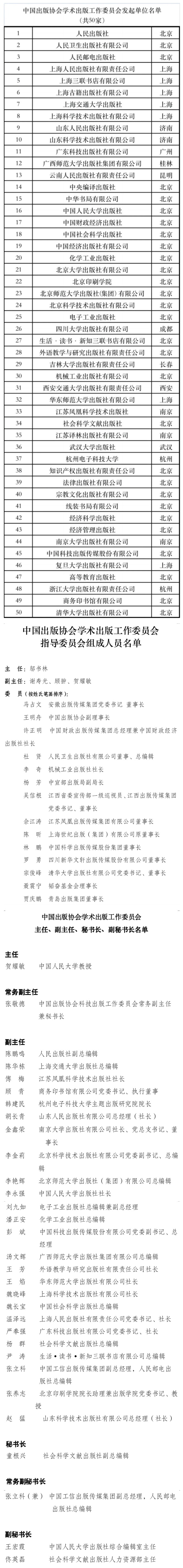 邬书林当选中国出版协会学术出版工委指导委员会主任,谢寿光、顾翀、贺耀敏当选副主任;王利明任秘书长,吴保安任常务副秘书长。50家出版机构作为中国出版协会学术出版工委发起单位,其中上海地区机构占7席。
