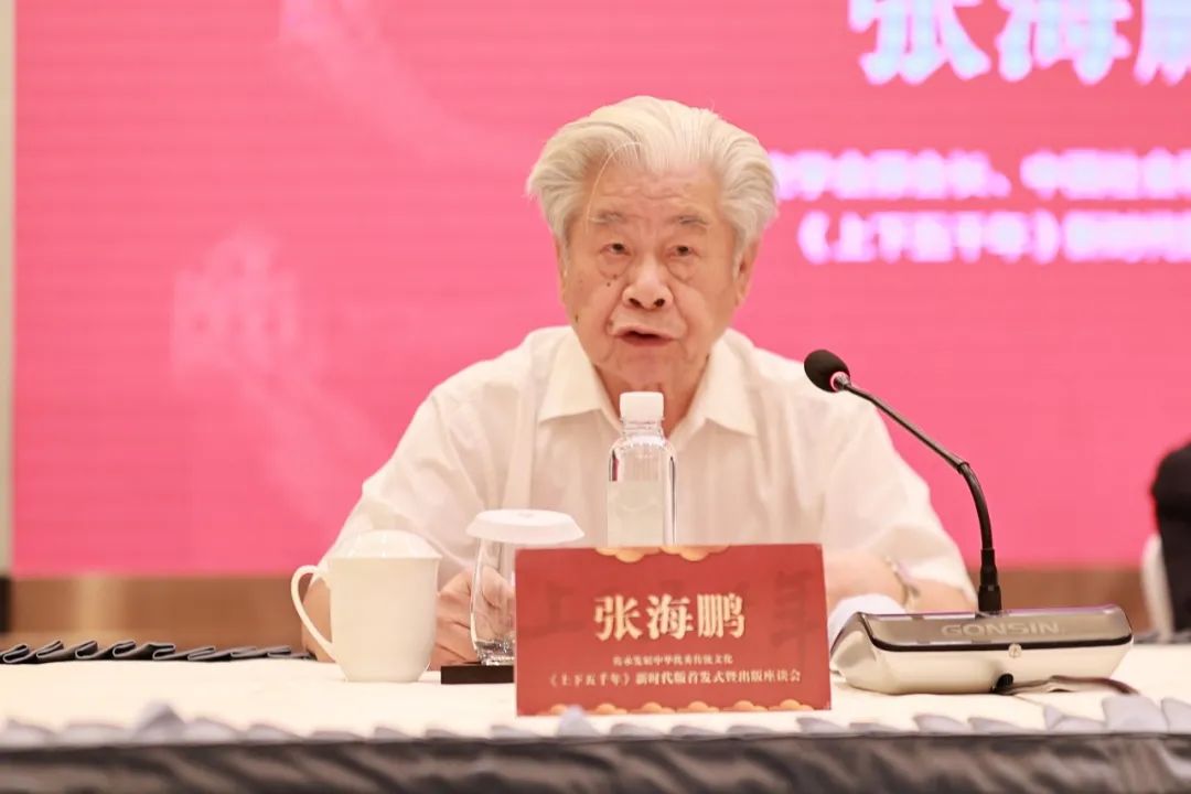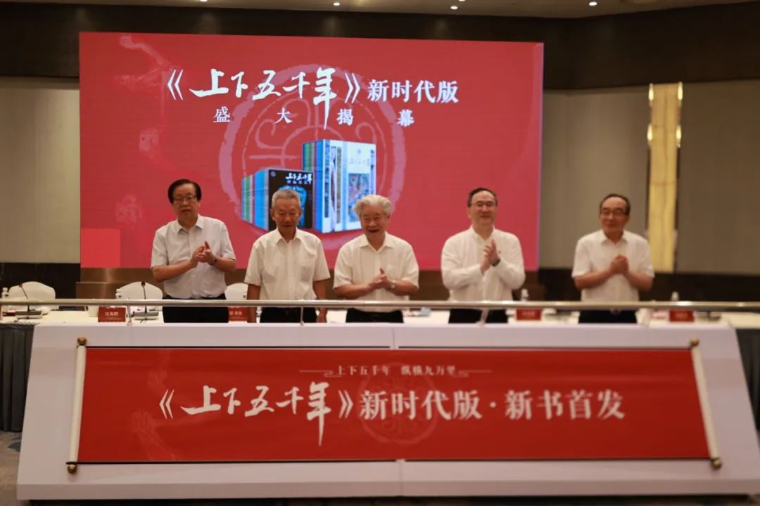 四十年经典品牌几代人历史启蒙新书揭幕仪式 2023年8月15日,“传承发展中华优秀传统文化——《上下五千年》新时代版首发式暨出版座谈会”在上海市衡山花园酒店绿宝石厅隆重举行。会议由上海世纪出版集团党委副书记、总裁阚宁辉主持。中国出版协会理事长邬书林、中国图书评论学会会长郭义强、中国编辑学会会长郝振省等出席会议并讲话。中共上海市委宣传部副部长高韵斐出席会议,并一起为新书揭幕。上海世纪出版集团党委副书记、总裁阚宁辉主持并致辞 出席会议的还有中国史学会原会长、中国社科院学部委员、《上下五千年》新时代版总主编张海鹏,中国史学会原副会长、上海社会科学院原副院长熊月之,以及来自全国各地的史学专家40余人。少年儿童出版社社长冯杰介绍《上下五千年》新时代版编辑出版情况 座谈会上,少年儿童出版社社长、《上下五千年》新时代版出版工作委员会主任冯杰介绍了《上下五千年》新时代版编辑出版情况。《上下五千年》新时代版总主编张海鹏出席会议并讲话 《上下五千年》新时代版总主编、中国史学会原会长、中国社会科学院学部委员、山东大学一级教授、统编中学历史教材总主编张海鹏先生在讲话中总结了新时代史学观的要点,从全局的角度,点明了《上下五千年》新时代版出版的重大意义。中国出版协会邬书林理事长出席会议并讲话 邬书林理事长在讲话中指出,作为中国第一部少年儿童通俗历史读物,《上下五千年》陪伴了几代读者成长,畅销40余年,在我国至今还没有一套儿童通俗历史读物能像《上下五千年》那样,能经得起如此长时间的检验,并产生了如此巨大的社会影响。因此,《上下五千年》被誉为我国少儿历史读物领域的“第一品牌”,也是我国出版界一面不倒的旗帜。邬理事长特别强调了《上下五千年》新时代版,一是编撰宗旨及内容体现了鲜明的时代特征,二是呈现方式新颖丰富,符合新时代读者的需求。 邬理事长高屋建瓴,从党和国家事业发展全局的战略高度,强调了出版在传承文明、传播文化中所发挥的重要作用,认为对少年儿童进行中华传统历史文化普及,出版适宜于小读者阅读的通俗历史读物,是一件很有意义的事情。《上下五千年》新时代版是献给新时代少年儿童的一份丰盛的精神食粮。中国图书评论学会郭义强会长出席会议并讲话 中国图书评论学会郭义强会长在讲话中指出,在新时代史学观念的指导下,《上下五千年》新时代版从内容到形式全面革新,增加了许多专题史内容、文物图片,直观生动地展现了中华文明的辉煌创造和历史积淀;精心设计排版,使其更具审美趣味,符合当下青少年读者的阅读习惯;此外还加入了不少中外交流以及港澳台、西藏等地区历史相关的内容,体现了“多元一体”的民族史观。 党的二十大从全面建设社会主义现代化国家的高度,明确提出“推进文化自信自强,铸就社会主义文化新辉煌”的重大任务,文化自信自强是实现中华民族伟大复兴的必然要求。少年儿童是祖国的未来,帮助孩子们了解中华文明五千年的发展史,感悟华夏文明的璀璨,民族精神的伟大,就是激发新一代青少年读者的民族自豪感和为中华民族伟大复兴事业献身的爱国主义热情。中国编辑学会郝振省会长出席会议并讲话 中国编辑学会会长郝振省对《上下五千年》新时代版的成功出版表示热烈的祝贺,指出本书的编纂过程让人深切感受到了这项出版工程的规模之庞大、任务之艰巨、意义之重要。少年儿童出版社立足经典,以全新的视角和理念,为全国少年儿童打造一部与时俱进的《上下五千年》,经过四年的艰辛努力,《上下五千年》新时代版终于圆满完成出版,这是献给新时代少年儿童的一份厚礼。《上下五千年》新时代版首发式暨出版座谈会与会专家领导合照 上海社会科学院原副院长熊月之先生、《上下五千年》新时代版执行主编王育济教授、复旦大学历史学系王维江教授、台湾中兴大学历史系孙若怡教授等诸位专家学者,在座谈会上分享了历史著作编创心得。会议中还向上海图书馆、嘉定区图书馆、上海少儿图书馆、中国近现代新闻出版博物馆、华二附中前滩学校、上海市中原中学等单位代表进行赠书。