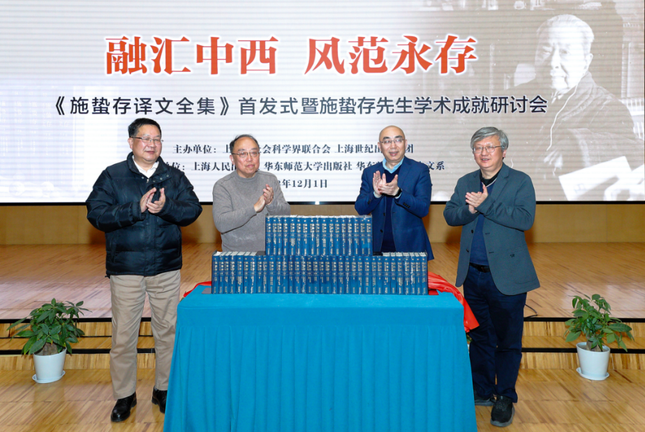 “融汇中西 风范永存——《施蛰存译文全集》首发式暨施蛰存先生学术成就研讨会”由市社会科学界联合会、上海世纪出版集团主办,上海人民出版社、华东师范大学出版社、华东师范大学中文系承办。
