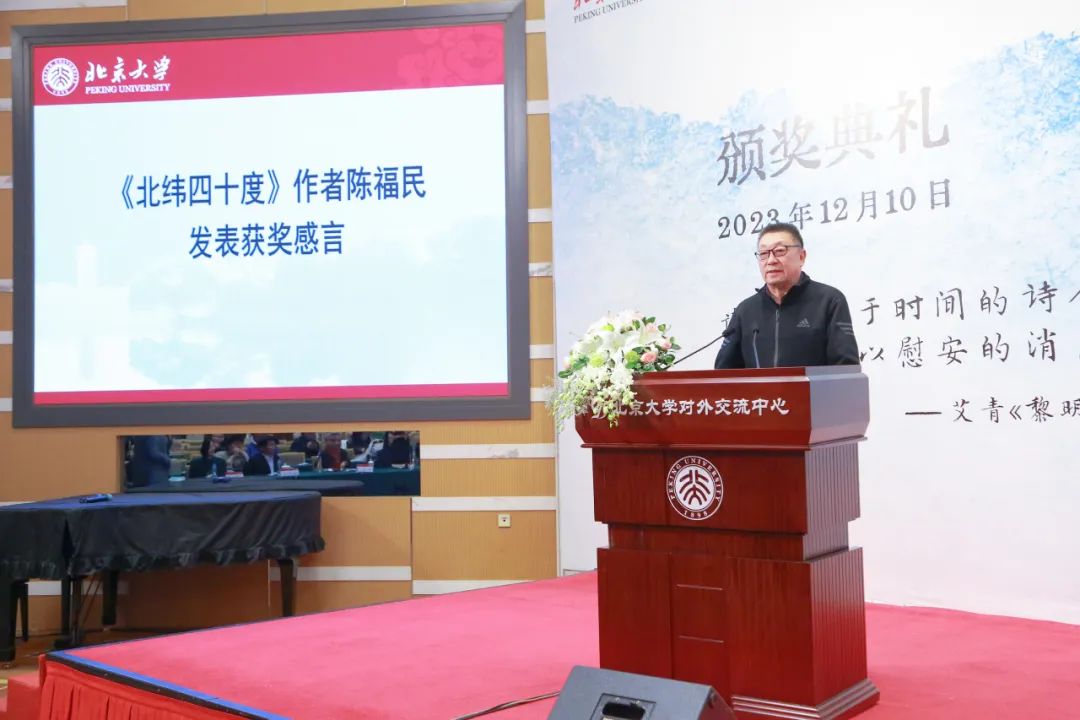 2023年12月10日上午,第三届北京大学王默人-周安仪世界华文文学奖颁奖典礼在北京大学英杰交流中心阳光厅举行。陈福民《北纬四十度》、黎紫书《流俗地》、林白《北流》共摘奖项。其中,陈福民《北纬四十度》由上海文艺出版社出版。