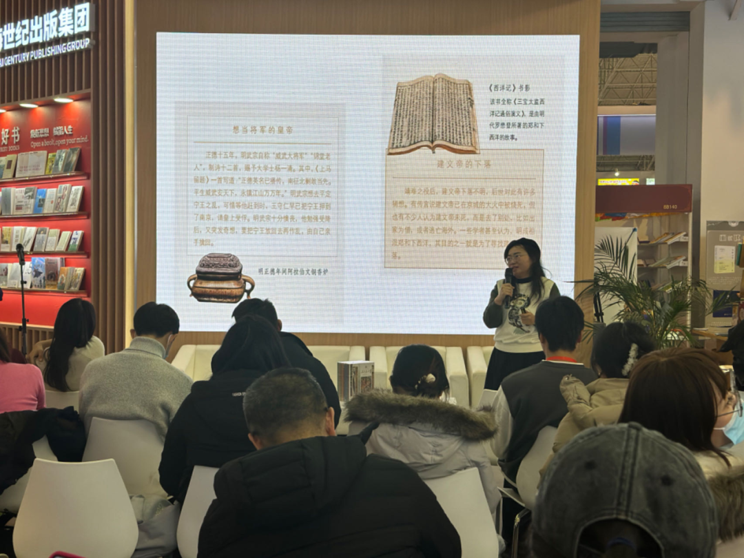 2024年1月11日下午,少年儿童出版社副编审、《上下五千年》新时代版责任编辑马淑艳作为活动嘉宾,在2024北京图书订货会世纪集团活动场馆内,为广大读者举行了一场生动有趣的《上下五千年》新时代版新书分享会。
