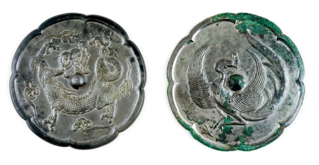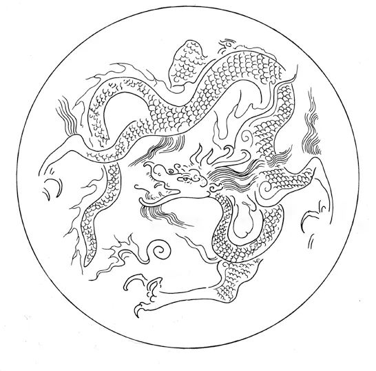 汉武帝茂陵出土的画像砖上有一条形象生动的龙【图2】,还保留着许多小型青铜龙的S形轮廓。这种传统姿态有其优势,龙似乎在扭头张望,目光锐利。在墓葬里的四神图案中,龙和虎都面朝前方,好像在天空中飞驰。描绘汉代动物的灵动线条延续了几个世纪,又在元晖(卒于520)墓志上重现。龙虎轮廓的相似性在这里就显而易见了,二者都有猫科动物的体型和长足。为了对称,四个部分的动物都成对出现,也都被云纹环绕。在汉代以来的铜镜上也能见到类似的形象。【图2】汉武帝茂陵龙纹画像砖拓片长75.6厘米,前1世纪大英博物馆收藏 到了唐代,西方的白虎和北方的玄武这两种动物的主要地位逐渐被青龙与朱雀替代。这一转变并不是说明四方神兽的形象不再有意义,而是由于青龙和朱雀被赋予了更特殊的象征意义。二者皆为祥瑞:龙代表“阳”的力量和创造力,掌管天宫和雨水;朱雀象征最为吉祥的方位,即南方—各种建筑都依南北向修建,坐北朝南。这类祥瑞动物被理所当然地用来装饰建筑、家具以及帝王和官员的袍服。在特定时期,龙逐渐开始象征帝王。这一象征的历史尚需研究,但至少应从汉代起,已有文献将二者相提并论。然而,这一象征并不具有排他性,龙的形象可以用在与帝王毫不相干的建筑、服装和器物中。无独有偶,朱雀,或后来的凤凰渐渐开始代表皇后。同样,饰有华丽鸟纹的建筑或纺织品、瓷器也不一定专属于或代表皇后。 尽管如此,帝王宫室,特别是陵墓装饰中,一定会有龙。以下图例出自两座最为著名的陵墓。第一例是从西安附近唐高宗及武则天所葬乾陵出土的一件石刻【图3】。茂陵中发现的早期呈S形姿态的龙【图2】在这里又再次出现,但乾陵石刻构图极为巧妙,所以传统图式的局限并不明显。龙的头部放大了不少,长着长角和凶猛的尖舌。四足中有两足离地,弱化了上文提及的猫科动物的特征,让人觉得它能在空中蜷曲身体并扭转回头,天空则由小朵祥云暗示出来。龙身上的火焰或泡沫状边缘出现在汉代以后,成为神话动物的常用表现形式并沿用至今。这种带有尖角的火焰边比双翼更加流行,而后者大概是从近东传入中国的。当这些火焰和泡沫状边缘与伊斯兰细密画和抄本插图中描绘的动物结合起来时,它们就成为了中国元素影响的证据。【图3】唐高宗与武则天乾陵中一块石板上所刻的龙纹7世纪-8世纪 在方形或圆形(非长方形)边框中,龙经常两两相对,腾云而起。将龙布局在圆形中,使其互相追逐的图式,显然更为适合,比如辽庆陵中的龙纹图案【图4】。这一环形布局与两两相对的形式不同,它的适应性很强,顺序无所谓正确或错误,因此适用于复杂的建筑装饰中的许多位置。而且,这类装饰的形状可方可圆,也可呈菱形。在这种新的布局中,艺术家巧妙地运用龙脊背的线条来传达龙在空中的灵动姿态,辽庆陵中龙的形象比唐墓中的要温和一些。【图4】双龙图案,出自辽庆陵11世纪 随着中国引入饰有錾花动物纹饰的西方银杯和银碗,包括龙在内的动物主题从建筑转移到了器物上,先是银器,而后是其他材质。当然,龙并未出现在外来的银器上。当中国工匠制作外来银器的本土版本时,他们加上了自己特别感兴趣的动物。他们用来描绘龙的图式不一定直接取自建筑上的图案,铜镜倒可能提供了易于调整、便于使用的范例。祥瑞动物自汉代起就出现在铜镜上,甚至还可能更早。唐代铜镜纹饰中则几乎都是龙、鸟或凤的形象。如【图5】所示,铜镜瓣状边框中有一龙一鸟,这种轮廓与同时期的银盘一致。为适应这个圆形区域,汉代与六朝时身体细长的龙被进一步扭曲了,脚也腾入空中。江苏省丹徒县丁卯桥出土的8世纪晚期银盘上的一条飞龙也如出一辙。【图5】两枚唐代铜镜,分别饰有龙凤图案直径15.8和16厘米,8世纪大英博物馆收藏 唐宋时期制作的龙纹盘或其他器物存世极少,银器和漆器也都很少见。鉴于有凤纹器物保存下来,我们可以推断,包括龙在内的其他动物母题也用于银器和漆器装饰。后来的瓷器也提供了证据。宋代定窑瓷器刻划精细,似乎直接以银器为原型,因为这种细白瓷的器形和纹饰在唐、五代时期的银器上就出现了。【图6】是一件定窑瓷盘上的图案,盘中央飞腾起一条姿态优雅的龙,可能是为了与另一只用料更昂贵的碗盘中的纹饰相称。【图6】定窑瓷盘上的龙纹,直径30厘米,北宋11世纪-12世纪Carl Kempe收藏