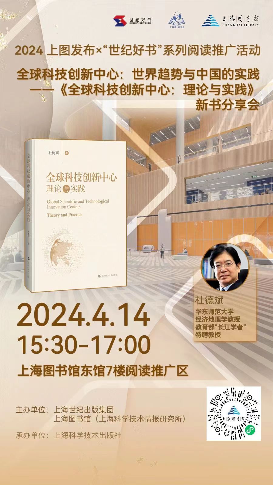 想了解这些信息吗?欢迎来参加《全球科技创新中心:理论与实践》新书分享会!2024年4月14日@上图东馆,让我们不见不散。