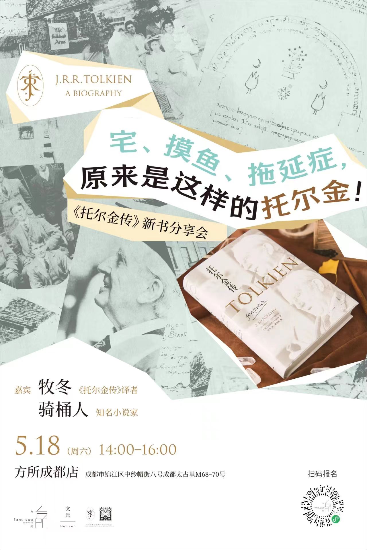2024年5月18日(周六)14:00—16:00,成都方所邀请到了《托尔金传》的译者、研究型托尔金粉丝牧冬(雪莱);知名小说家骑桶人,来和大家一起聊聊《魔戒》之父J.R.R.托尔金的人生和创作。