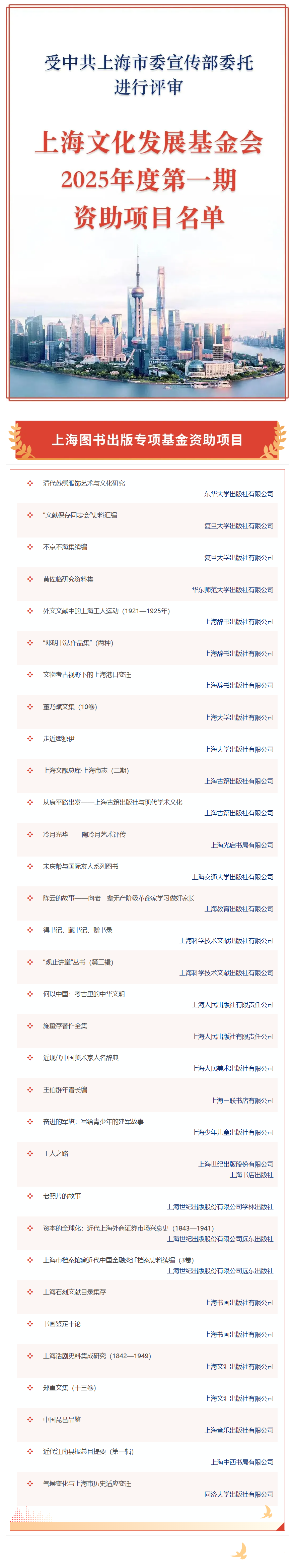 重磅|2025年度上海图书出版专项基金资助项目名单出炉