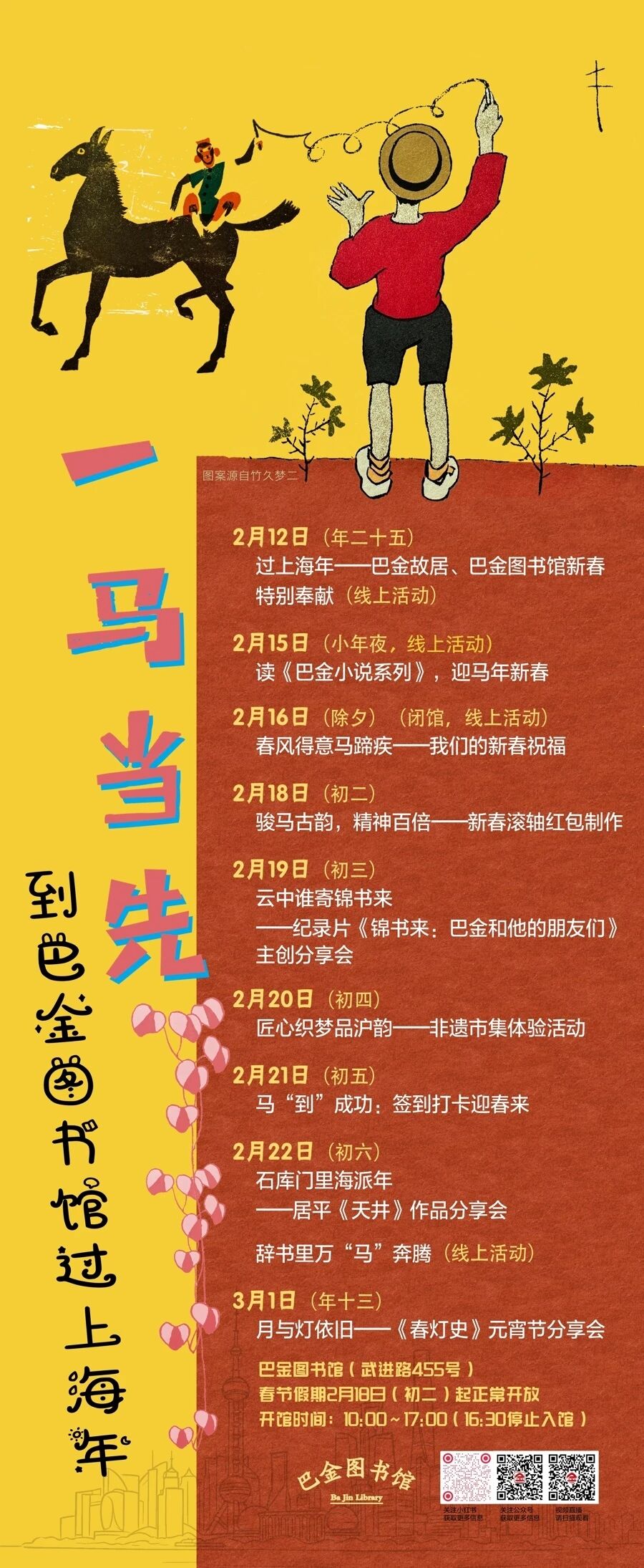 品文化味,过上海年!2026春节假期,巴金图书馆“一马当先”敞开大门迎接各地读者。这是巴金图书馆开放后的第二个春节,2月16日(除夕)及2月17日(正月初一)闭馆,从2月18日(正月初二)起系列线下活动将为公众奉上丰富春节文化大餐。