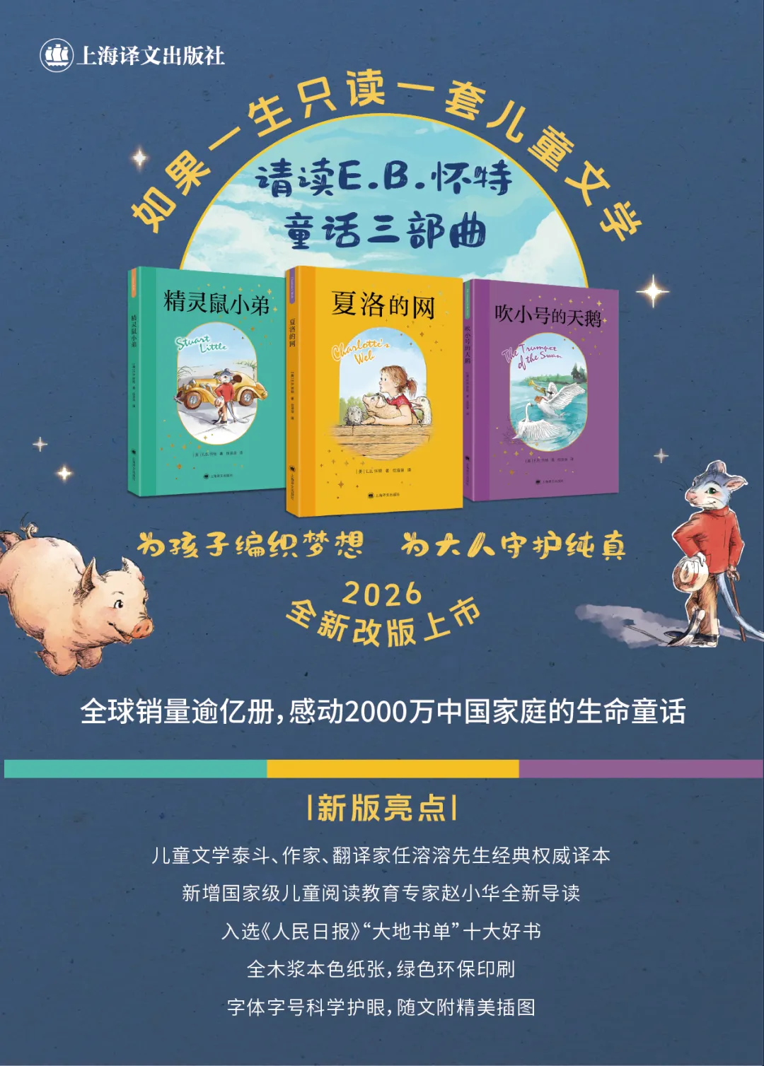 从2004年的正式引进,到2026年的经典焕新,《夏洛的网》不仅成为了国内儿童文学经典的常青树,更是真正扎根于无数读者心中、陪伴人一生成长、常读常新的一部文学经典。