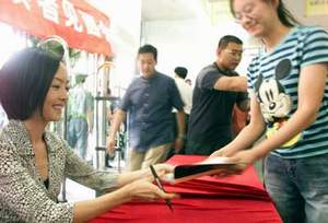 昨日下午1时30分凤凰卫视当家花旦陈鲁豫在西单图书大厦一层就新书《心相约》与读者见面交流,并举行签名活动。鲁豫此次签售的目的是为了打击盗版,同时完成自己和读者面对面交流的心愿。