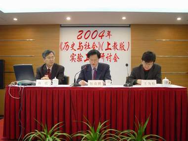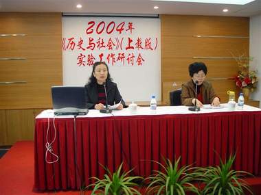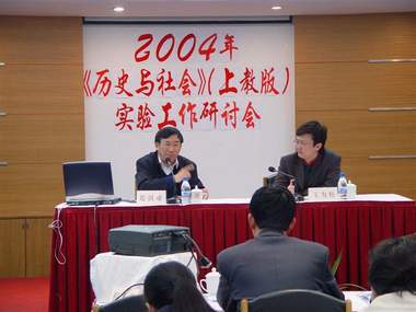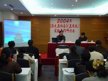 2004年3月14日-18日,由上海教育出版社主办的2004年《历史与社会》(上教版)实验工作研讨会在华甸园大酒店召开。来自全国20多个实验区的60位领导、教研员和一线老师参加了研讨会。上海教育出版社总编包南麟对大家的到来表示热烈欢迎。《历史与社会》课标组(一)组长、教材主编、北京师范大学哲学与社会学学院院长韩震教授对《〈历史与社会〉的构建与实验》进行了专题论述,北京师范大学政教系副主任程光泉博士阐述了《关于学业考试的几个问题》;著名学者、复旦大学历史地理研究所教授葛剑雄作了《新教材中的人文意识》的学术报告;安徽省教育厅教科所所长阚智、深圳南山区教育科研中心教研员吴萌等12个实验区的代表就新课程的实验作了大会发言。 |