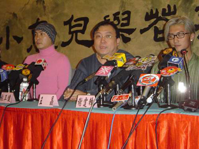 因“王伯昭被打 ”事件而未播先红的大型古装剧《小鱼儿与花无缺》虽然有名导王晶以及张卫健、谢霆锋等超强的明星阵容,不过,在1月25日该音像制品上市发行的新闻发布会上,“打人事件”再次充当了主角,让光临新闻发布会的王晶、张卫健、谢霆锋不得不再面对这个敏感话题。
