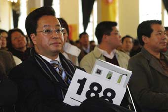 第一个高潮出现在第15件拍品——现任复旦大学党委书记秦绍德的摄影作品《旦复旦》上。之前竞拍均较为平淡,拍品大都在5000元以下。当拍卖师介绍完第15件拍品后,有人马上出价2000元,可是同时第二个竞拍者马上报价1万元超出,紧接着: “1.1万”、“2万”、“2.5万”、“2.6万”、“3万”……不到一分钟之内,有十几个竞拍者出价,让全场观众都兴奋起来,最后188号以4万元的价格拍下的时候,全场响起了第一阵掌声。