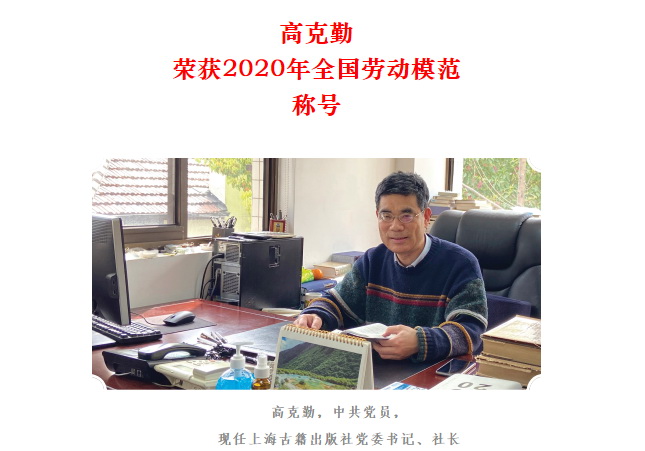 高克勤 荣获2020年全国劳动模范 称号 高克勤同志从事编辑出版工作30多年来,始终认真执行党的路线方针政策,把好出版导向;精通编辑出版业务,对中国古代文化有深入研究,长期致力于弘扬中华优秀传统文化;擅长经营管理,工作业绩突出,在群众中享有较高威信,在全国古籍整理出版领域具有广泛影响。作为一位专家学者型的管理者,高克勤还结合专业做研究,深入思考出版精神的传承、出版品牌的维护等问题,取得了丰硕成果。2013年1月高克勤担任上海古籍出版社党委书记、社长,他带领全社员工牢固树立“围绕中心抓党建,抓好党建促发展”的工作思路,推动全社党建和出版工作健康、可持续发展。