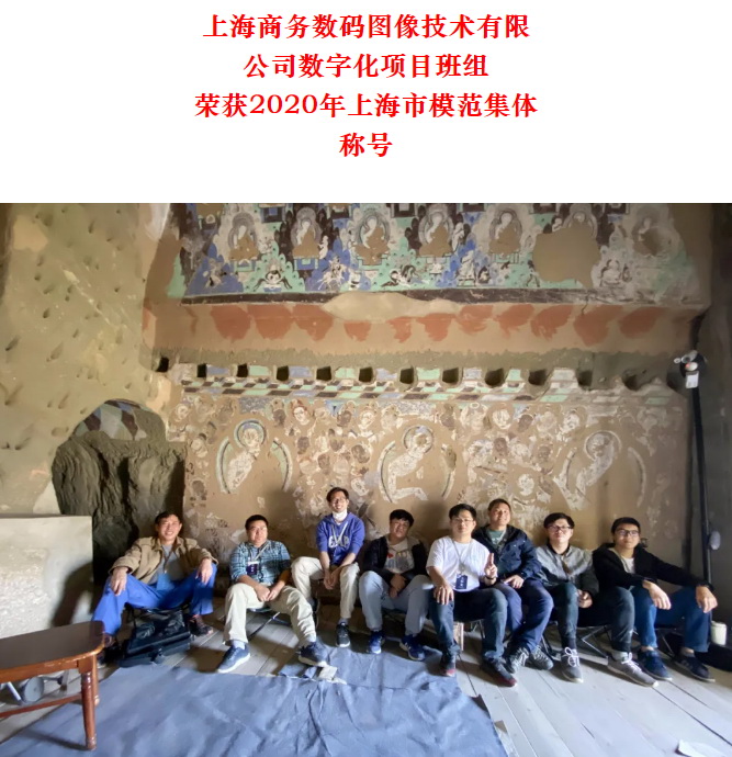 上海商务数码图像技术有限 公司数字化项目班组 荣获2020年上海市模范集体 称号 上海印刷集团所属上海商务数码图像技术有限公司数字化项目班组,基于多年的数字化复原技术积累,充分发挥团队优势,先后完成新疆龟兹石窟群30个石窟壁画高清数字化工作,并在数字化成果的利用上勇于创新,利用3D打印工艺实现了四个代表性石窟的等比例复原制作;不断消化吸收VR、AR等新的数字技术用于文物艺术品的复原制作与数字化展陈,配合新疆龟兹研究院完成流失海外克孜尔壁画图像复原十城市巡回展、阿克苏博物馆龟兹洞窟复原多媒体互动展示厅设计制作及施工布展等项目。同时,整合优化班组力量,完成了中华艺术宫、上海历史博物馆等馆藏文物的高仿真复制和上海辞书出版社《辞海》《汉语大辞典》档案数字化工作。