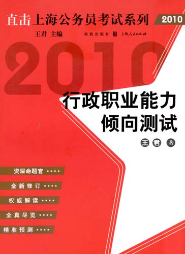 2010年度上海公务员考试《行政职业能力倾向测试》水平测试第一章 概述第一节 《行政职业能力倾向测试》的性质第二节 《行政职业能力倾向测试》的设计原理第三节 《行政职业能力倾向测试》考试大纲详解第四节 《行政职业能力倾向测试》的施测方法第二章 数理能力第一节 上海卷与全国卷的异同第二节 考试要点、命题思路与解题技巧第三节 实战考场第三章 言语理解与表达能力第一节 上海卷与全国卷的异同第二节 考试要点、命题思路与解题技巧第三节 实战考场第四章 逻辑推理能力第一节 上海卷与全国卷的异同第二节 考试要点、命题思路与解题技巧第三节 实战考场第五章 常识应用能力第一节 上海卷与全国卷的异同第二节 公共行政重要考点及专项训练第三节 法理(法学基本理论)重要考点及专项训练第四节 宪法重要考点及专项训练第五节 公务员法重要考点及专项训练第六节 行政法学重要考点及专项训练第七节 公文重要考点及专项训练第八节 人文、科技常识重要考点及专项训练第九节 政治与时事重要考点及专项训练