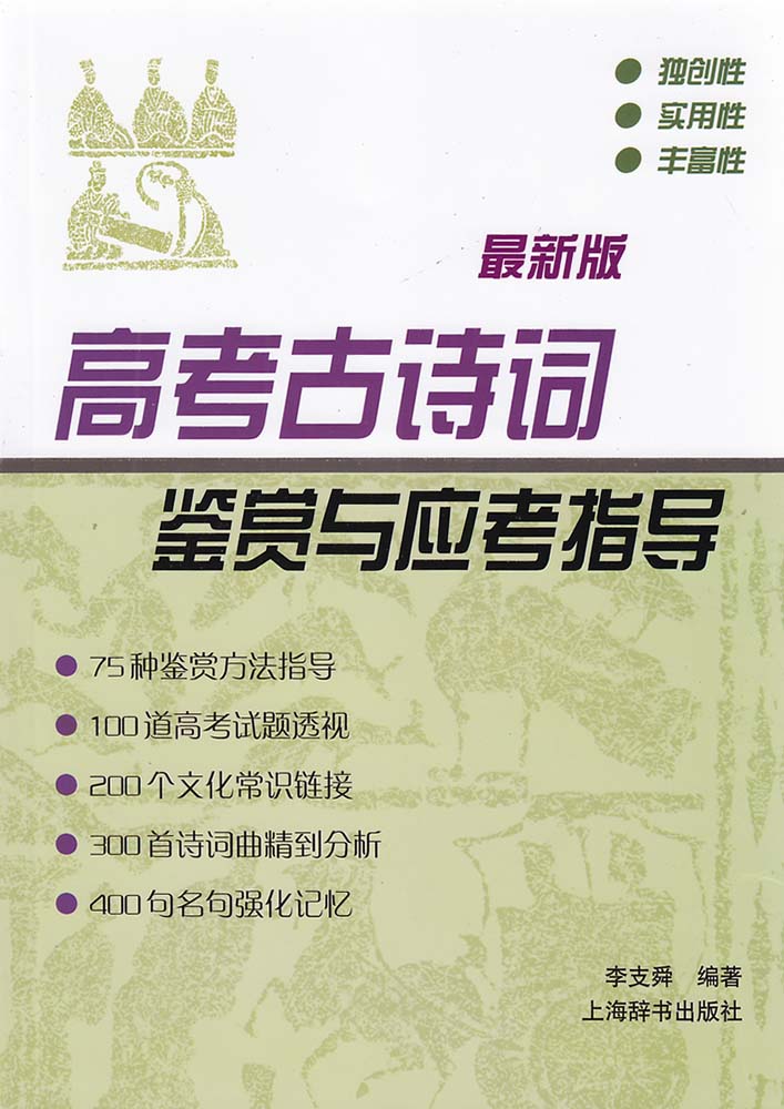 本书在编制体例方面更为合理明晰,共分四部分:“鉴赏方法与考点解读”、“课内强化与课外拓展”、“解题指导与考题解析”、“篇名索引与必背篇目”。本书更体现李老师富有个性的“语文问题式”教学风格,突破了传统“单篇阅读”的记诵模式。“鉴赏方法与考点解读”把高考古诗词题的所有考点加以归纳分类,从十个问题角度,分为71种鉴赏方法,加以解读。每种方法分为五个板块:方法指津、考题解析、能力迁移、拓展阅读、相关链接。把握高考古诗词题的趋势,增加许多近几年的高考古诗词题解析和新题型的解题指导。在原“古诗词篇名音序索引”之后,新增“高中古诗词必背篇目一览”。教师可用作教材,学生又能当成提高古诗词鉴赏能力的“金钥匙”,加上全书还附录了不少资料以备参考,俾使用者能得心应手、进退裕如。