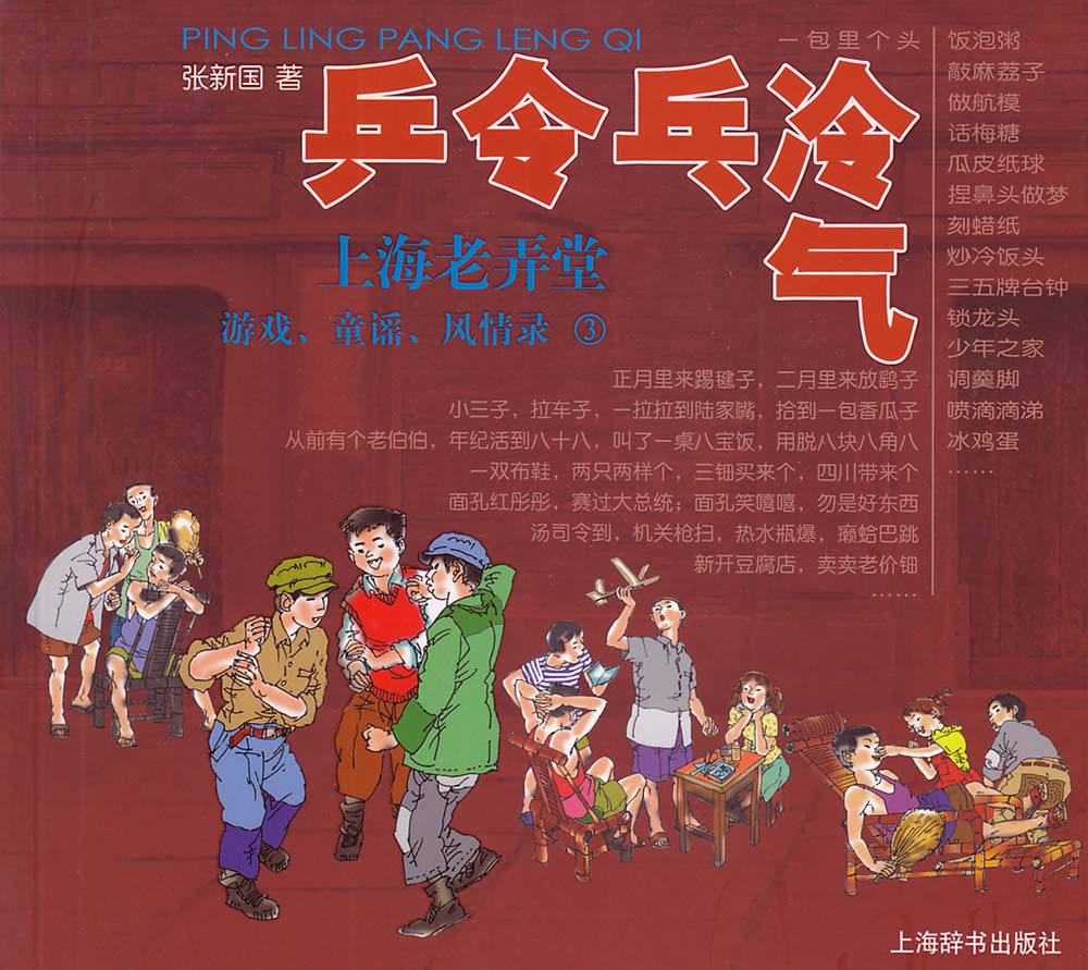 弄堂足球乒令乓冷气瓜皮纸球喷滴滴涕敲乌龟章做航模白相干摇摆狗大怪路子绕口令小三子八八八八八正月里来踢毽子姥姥、姥姥几点了鸡鸡斗,蓬蓬飞汤司令我在马路边路边有颗螺缝帽人块头呒清头一双布鞋小白兔乖乖,把门开开马兰花天上星亮晶晶面孔笑嘻嘻,勿是好东西新开豆腐店九九烂到九一天世界牛豁浪当聪明面孔笨肚肠搞七廿三捏鼻头做梦十六铺刚下来饭泡粥小儿科
