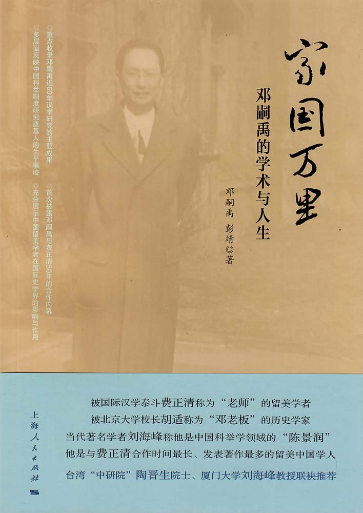 邓嗣禹先生小传 黄培序言 刘海峰前言 彭靖上编一、人生履痕 去国记——七七战起自平津绕道日本赴美日记 美国房东太太的面孔 美国陆军特训班给予吾人学习西语的教训 问学谏往录——北大任教经历回顾二、论文选萃 中国科举制度起源考 中国对西方考试制度的影响 中国考试制度与政治文化社会风俗的关系 蔡元培的革命活动 杜甫诗中之宗教 血盟义儿与结拜兄弟杂考 近五十年的中国历史编纂学 王夫之的历史观及其历史著述 《燕京大学图书馆目录初稿·类书之部》叙录 《太平广记引得》序三、师友回忆与往来书信 胡适之先生何以能与青年人交朋友 纪念裘开明先生——一位毕生为学术界服务的中国图书馆专家 与胡适往来信札 与裘开明往来信札 致陶晋生信函 致女儿邓同兰家书下编四、追忆与研究评述 追思邓嗣禹教授 邓嗣禹与他的汉学研究 关于英文本《中国参考书目解题》 邓嗣禹与英文版《中国近百年政治史》 美国印第安纳大学中文藏书的发展——兼述邓嗣禹和枊无忌教授的贡献五、学林漫步 邓嗣禹为何被费正清称为“老师”? 亦师亦友五十年——邓嗣禹与费正清的学术因缘 《清代名人传略》谱中美两代史学家佳话 顾立雅与邓嗣禹——美国第一代汉学家鲜为人知的学识与交往 六十年前邓嗣禹与贝德士发生的一场激烈争辩 胡适与邓嗣禹在四十年代的交往 裘开明与邓嗣禹往来信札透露的讯息 顾颉刚与邓嗣禹在燕京大学的岁月——纪念顾颉刚先生诞辰120周年 杨联陞与邓嗣禹——国际汉学先驱者的早年交往 周一良与邓嗣禹的学术之路六、传承与创新 科举制对于中国妇女社会地位的影响作用——科举学研究中的女性学视角 从科举制度看中国文化软实力项目的形成与发展——与关世杰教授商榷 科举制度与中国文化软实力附录 邓嗣禹先生论著、译著目录 邓嗣禹先生年谱初编 跋 陶晋生 为千年科举名扬海外,两代人的接力传承(代后记)