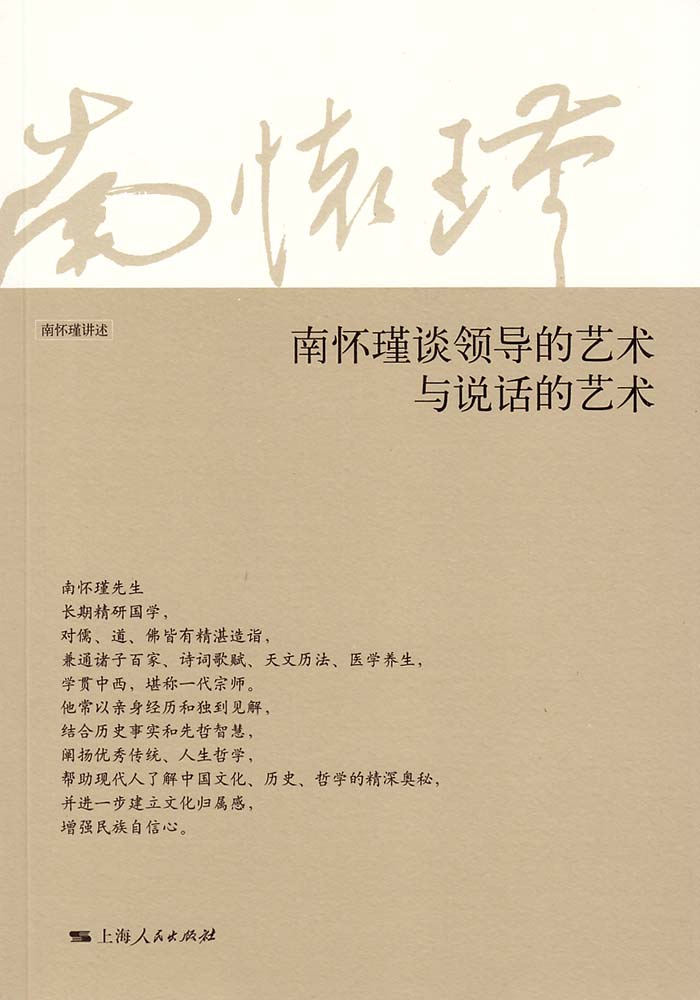 上篇 领导的艺术领导者的智慧 用人至重 攻心为上 经济的三脚架 百姓能安居乐业 不被捧坏 要有社会责任 做明白人 自知知人 超脱毁誉 用人不疑 派系问题 如何明罚?明察?明赏? 专权 优与不敏 廉而过洁? 不能过忠 分寸之拿捏 敌人就在身边? 懂得请教领导者的器度 犯颜进谏 不偏信耳目 全才难求 处理纠纷 冬天的对话 罪在朕躬 善于用人 博采众议而有取裁领导者要能识人 识人如辨物 人性的正反面 正臣的风范 恕臣之道 不正之臣 亡国之臣领导人用人的九个顾虑 立小忠以售大不忠 貌厉而内荏 害同侪以专朝 进邪说以乱是 因赏以偿恩,因罚以作威 欺君罔上 托重臣以自结 苟合以求进 悦主意以求亲下篇 说话的艺术 义利之辨 南怀瑾先生的著作 玩弄仁义的权智 虽有台池鸟兽,岂能独乐哉? 五十步笑百步 涂有饿莩 率兽食人 始作俑者 望之不似人君 从一只牛的故事说起 缘木求鱼 乐岁终身苦,凶年不免于死亡? 以同理心来诱导之 独乐乐,不如众乐乐 林园与治道 流连忘返 寡人有疾,寡人好货 寡人有疾,寡人好色 臣弑其君可否? 学非所用用非所长论 苏秦口辩轻取十城 姜太公智言——出尔反尔 强为善而已矣? 行或使之止或尼之 说难 多闻阙疑,慎言其余,则寡尤 御人以口绐 失言与失人 一言兴邦一言丧邦 言必有中 随机施教 其言也切 言不及义 巧言乱德 说话难 难说话 隐居放言 不知言,无以知人 讷于言 听其言而观其行 看个人资质说话 装模作样附录 选摘自《格言联璧》