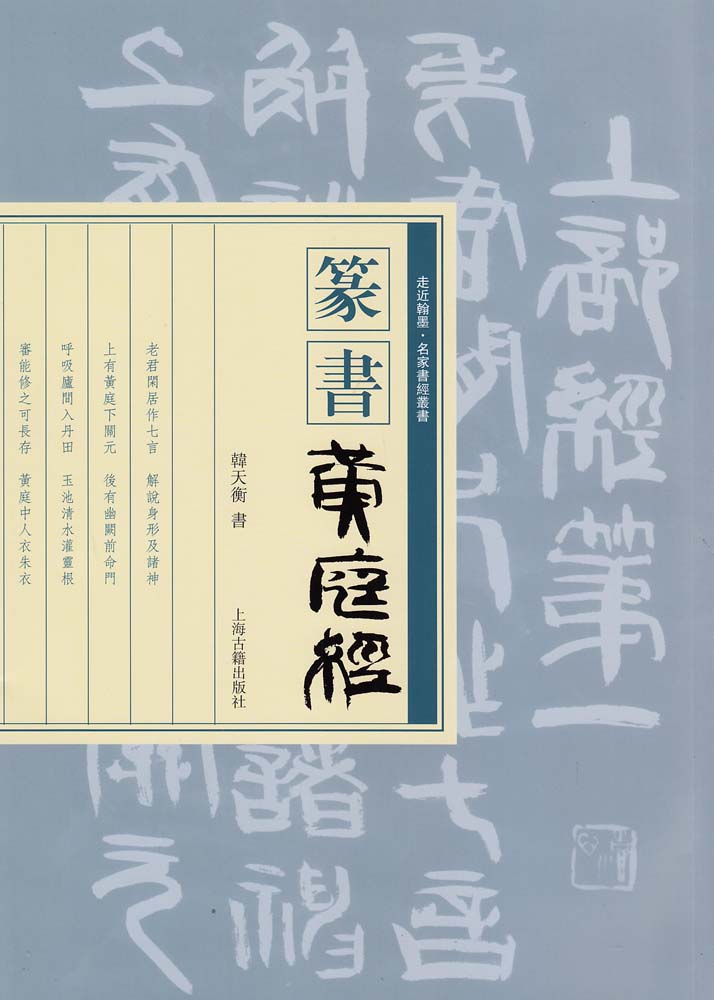 《篆书〈黄庭经〉》为“走近翰墨·名家书经”丛书一种,该丛书特邀国内著名书法名家以自己擅长之书体书写中国传统文化经典,每种经典均有楷、草、隶、篆、行五体,书写形式为小品册页。丛书均按照书法家所书原大彩印,完美展现了书家作品原貌。书前有“出版说明”,书后有书家自作“后记”一篇,细说抄经心得,指导读者临摹,可为习书之人模范。此套丛书不仅能使广大读者品位经典,更能使广大读者走近翰墨。