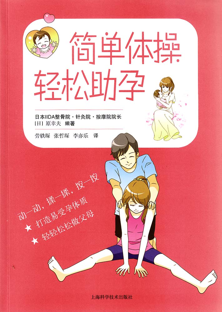 原幸夫编著的《简单体操 轻松助孕》从全新的视 角解读夫妻备孕、助孕。你是否有腰酸背痛、身体发 冷、痛经、头痛 、不明原因的不舒服等症状,你是否 因为工作、生活的压力而焦躁、疲惫,你是否因为想 要孩子又总不能如愿而给爱人太多的负担…… 请尝试简单有趣的穴位按摩和体操吧!找准穴位 ,动一动、揉一揉、按一按:矫正歪斜的体肜,促进 血液循环;改善微寒的体质,提高基础体温;改善淋 巴循环,保持代谢通畅;排减身心的压力,舒缓紧张 情绪。除了自己操作,还可以夫妻合力完成,还有特 别设计的针对男性的穴位按摩法,和你的爱人一起尝 试简单的穴位按摩和体操吧!