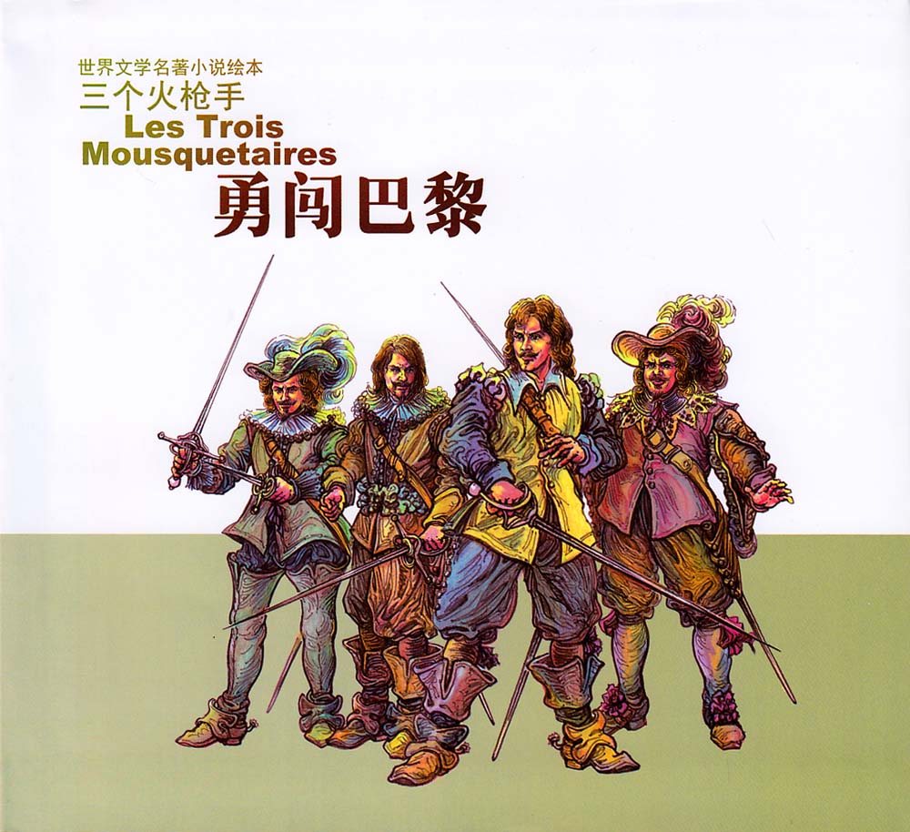 由汤淮绘的《三个火枪手(勇闯巴黎、金钢钻坠子全两册)》的第一集《勇闯巴黎》。讲述了青年达尔大尼央只身前往首都应征火枪手,于麦安镇遭遇变故负伤断剑,并丢失了父亲的引荐信。在巴黎火枪队官忒来韦勒的府邸,他结识了阿多斯、波尔多斯、阿拉宓斯,经过两场殊死拼杀与他们结下了生死情意,并由此获得了国王路易十三的好感,但却同红衣主教黎塞留及其手下数度交恶,为以后多舛的命运投下了阴影。
