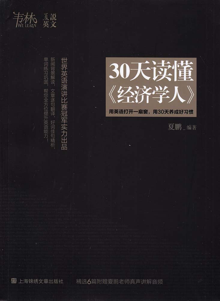 在本书中,夏鹏老师通过新闻背景解读、文章逐句翻译、好词佳句精析及单词巩固练习,让你在30天内读懂《经济学人》。本书还特别精选6篇文章附赠夏鹏老师真声讲解音频。