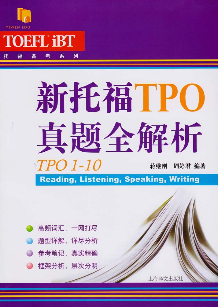 本书全面系统地解析了新托福TPO考试的每一道题目,并结合教学一线多年的教学经验,针对TPO的题型设计、出题原则、应对策略等分别给出了详尽的描述,可以帮助广大托福考生尽快熟悉并适应新托福考试的具体要求,在短时间内实现分数的高效提升。