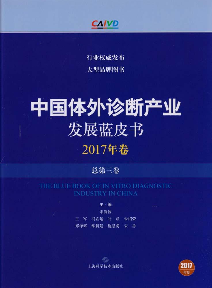《中国体外诊断产业发展蓝皮书 2017年卷(总第三卷)》内容涵盖:2017年政策法规与标准,2017年中国体外诊断行业报告、2017年行业热点技术与产品,体外诊断领域学术、技术和产品发展分析(生化诊断、免疫诊断、分子诊断、临床检验、微生物检验、 POCT、血源安全检测、体外诊断产品相关原材料、实验室智能化、流水线、大数据),临床实验室质量管理,物联网技术在IVD产业上的应用与发展现状,中国流通企业现状,产业投资与并购,2017年上市企业发展状况,中国体外诊断产业园区发展状况,学会与学术活动以及2017年大事记,医疗机构及计划生育发展统计公报,体外诊断产业企业名录等内容。