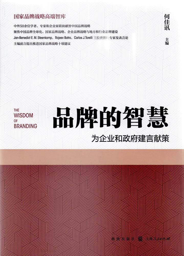 为深入贯彻落实“加强品牌建设,不断提升中国产品和服务的质量与影响力”,华东师范大学教授、国*品牌战略研究中心主任何佳讯教授主编了《品牌的智慧——为企业和政府建言献策》。作为第一本由国*品牌战略高端智库、中外50余位学者、专家和企业家联袂献智中国品牌战略的专业书籍,本书聚焦中国品牌全球化、国*品牌战略、企业品牌战略、地方和行业品牌建设等,积极为企业和政府在推进和加强品牌建设方面建言献策。该书适合作为政府、企业、咨询公司和行业组织的管理人员和从业者的参考用书,适合作为市场营销和品牌管理在读硕博士生与教学研究人员的参考书,适合作为MBA、EMBA、EDP等各类商学院学位项目或非学位项目品牌战略相关课程的教学参考书,以及适合各类图书馆馆藏。