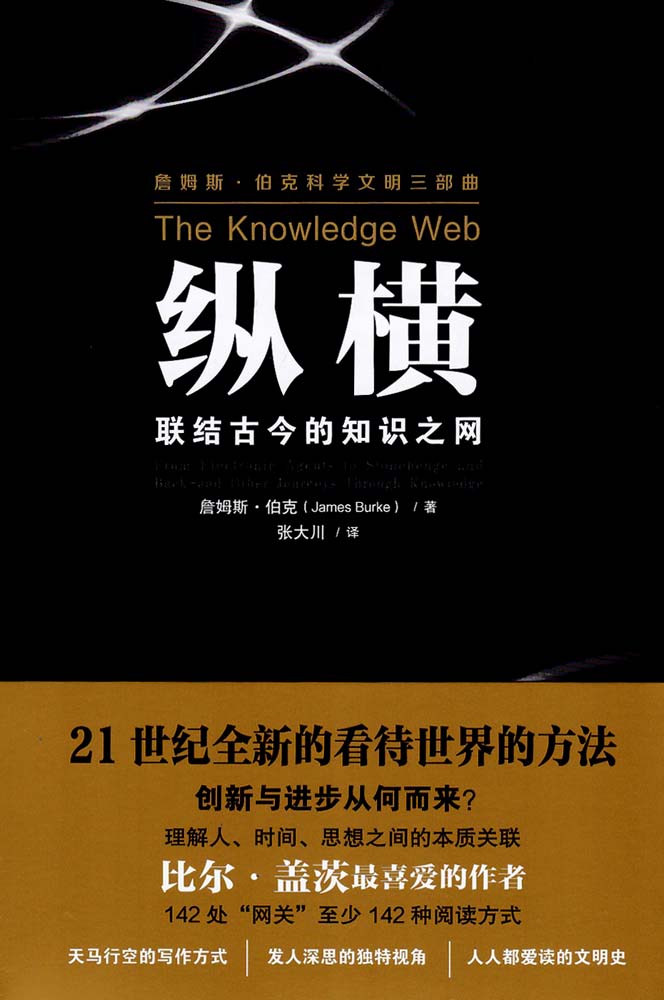 作者伯克引领我们在贯穿古今的知识之网中做了一次迷人的穿梭旅行。他向我们展示了这次航程的妙趣所在,介绍了一些看似没有关联的观点和新事物是如何跳跃、纠结于这个巨大的、各部分相互交织的知识之网的。例如:从卡门涡街到相对论,从香槟酒瓶到壁纸设计,从圣女贞德到曲艺杂耍再到野牛比尔。伯克让我们看到,事物之间其实彼此关联,构成一种网状知识系统。