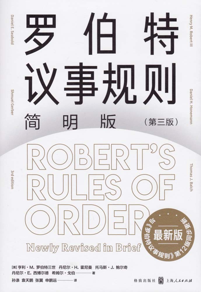 前言 组织治理和群体有序决策的工具第一篇 为什么要有规则第1章 到底为什么开会需要议事规则第二篇 当你要参加一场会议第2章 会议中会发生什么第3章 会议上如何作出决定:动议的处理第4章 辩论第5章 修正案第6章 改期和委托第7章 会议组织如何改变决定第三篇 表决和选举第8章 表决第9章 提名与选举第四篇 章程和各类规则第10章 规则的基本类型第11章如何贯彻和暂缓规则第五篇 进阶第12章 查阅规则:如何使用《罗伯特议事规则》第12版第13章 常见问题第14章 动议总述第六篇 当你已当选或被任命第15章 主持人和副主持人第16章 秘书第17章 财务官第18章 董事会成员第19章 委员会主持人和成员第20章 代表大会代表和候补代表附录表A 主持人如何处理动议表B 主持人何时起立或坐下表C 主持人如何主持会议表D 动议规则表表E 成员如何措辞如何在开会时用好这本书……索引