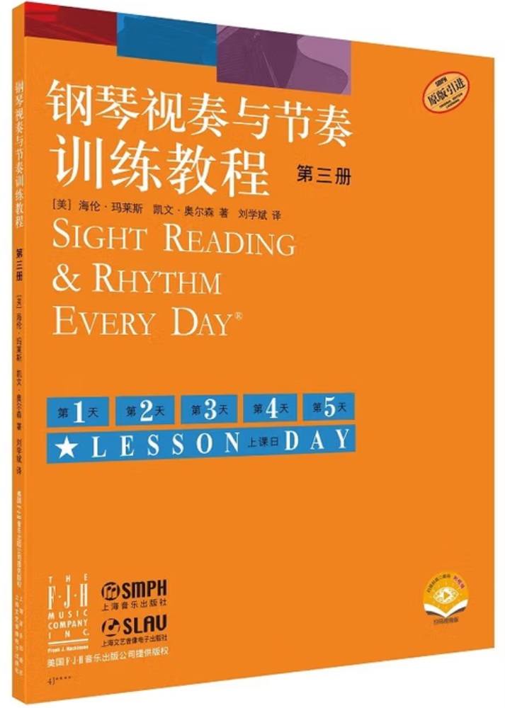 第一单元新概念:左手弹奏I和V65和弦,伴随右手弹奏简单的旋律;运用第二册中学到的基本节奏;转调第二单元强化第一单元的概念第三单元新概念:C大调练习曲中的附点四分音符第四单元新概念:G大调和F大调练习曲中的附点四分音符;保持音记号(-)第五单元新概念:在C大调、G大调、F大调练习曲中,左手弹奏I和V65和弦,伴随右手弹奏简单的旋律第六单元新概念:在C大调、G大调、F大调练习曲中简单的手指跨越指法(二指跨过大指)第七单元新概念:重音记号(>);在D大调、A大调、E大调练习曲中的附点四分音符第八单元新概念:在D大调和A大调练习曲中简单的手指跨越指法第九单元新概念:右手弹奏I和V65和弦,伴随左手弹奏简单的旋律第十单元复习所有的概念第一至十单元视奏与节奏阶段复习第一至十单元视奏补充练习第十一单元新概念:速度标记:柔板(adagio)、行板(andante)、快板(allegro);复习附点四分音符的节奏、I和V65和弦第十二单元新概念:大三度和小三度音程;速度标记:中板(moderato);复习I一V65一I和弦进行第十三单元新概念:纯四度和纯五度音程;力度标记:ff(很强)、pp(很弱);复习G大调、F大调和D大调练习曲中的附点四分音符·第十四单元新概念:大二度音程;G大调、D大调和A大调练习曲……