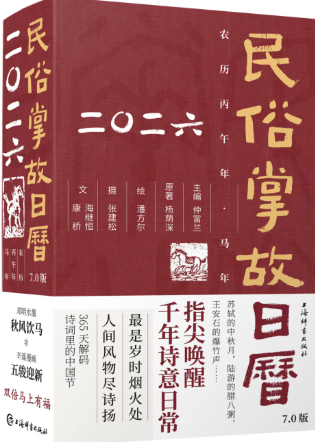 著名民俗学家仲富兰教授领衔主编的《民俗掌故日历》系列持续探索中华民俗的深厚魅力,7.0版(2026年)聚焦于“中国古典诗词与民俗文化”这一璀璨主题,恰如点睛之笔:“民俗厚土培诗韵,诗韵繁花映俗风”。中国古典诗词与民俗文化,两者共生共荣,互动映照。古典诗词是民俗的“雅韵华章”,以其高雅优美、富有韵律的形式,提炼并升华了民俗中的情感、场景与文化精髓;而民俗则是滋养古典诗词的“丰沃厚壤”,源源不断地为诗词创作提供素材、主题与深厚的文化根基。二者相互依存,共同铸就中华文化的瑰宝。本版日历匠心独运,精选古往今来描绘岁时节令、民俗风情的诗词名篇佳作,以“每日一诗”的亲切形式,带您领略诗词与民俗交融的魅力。您将在王安石的《元日》中感受春节爆竹驱/邪、屠苏迎新、桃符换旧的生动场景;在辛弃疾《青玉案·元夕》中沉浸于元宵灯会的华美璀璨与人间欢腾;随杜牧《清明》体会清明时节的雨丝情思;从文秀《端午》追溯端午习俗的深厚渊源;品味秦观《鹊桥仙》编织的七夕浪漫情笺;在苏轼《水调歌头》的中秋咏叹里共鸣于月圆人圆的期盼与人生哲思;借王维《九月九日忆山东兄弟》抒发重阳登高的亲友情愫;从杜甫《小至》感知冬至阳生的气象更新;于陆游《十二月八日步至西村》中感受腊八馈粥的乡村暖意……这些诗词,不仅是文学瑰宝,更是民俗风情的鲜活载体与深情写照。通过每日沉浸于一首经典节日诗词,《民俗掌故日历7.0版(2026)》让您在感受诗词韵律意境之美的同时,深入理解民俗节日的文化内涵与情感寄托,有效促进民俗文化的传承与传播,让民俗文化在日常生活中焕发恒久光彩。