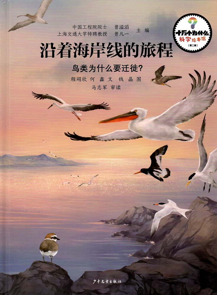 从广西北海,经过广东、福建、上海、山东等地,鸟类的迁徙每年沿着这条路线如期进行。这本科学绘本围绕中国鸟类迁徙地图,为孩子们介绍鸟类的生活习性,不同地点的地貌特征、风土人情。让孩子们爱上祖国山河大川、人文风土,鼓励他们爱鸟护鸟,保护自然和生态。十万个为什么·科学绘本馆(第二辑)是一套为3-8岁儿童打造的科学绘本书系,每册图书由科学绘本故事、科学问答及科学艺术互动手册组成。邀请国内一线科学家撰稿、新锐艺术家绘制插画。让孩子用科学认识世界、用艺术感受世界。