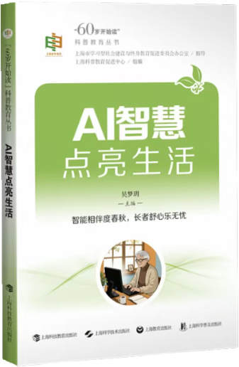 本书是专为老年人打造的人工智能入门与实用指南,旨在帮助老年群体轻松走进智能时代,享受科技带来的便捷与乐趣。全书从基础认知出发,先解答“什么是人工智能”“人工智能如何诞生”等核心问题,清晰讲解生活中运用AI的方法与潜在风险;再通过类比人类感知、表达等智能,让老年人直观理解AI的输入、输出、创意优化、互动反馈等功能。本书还聚焦AI对银发生态的价值,介绍其在养老、社区服务、慢病管理等领域的用途,助力减轻家庭照护负担,拓宽老年人社会参与途径。全书的重点及亮点在于第三、四章节,为老年人层层递进地讲解了实操技巧。内容上,既涵盖AI软件的选择、对话开启等基础操作,也提供出游规划、拍照创作、制作纪念册等场景化进阶技巧,还配套防忘指南与常见问题解答,帮助老年人轻松地运用这些智能应用,享受科技带来的乐趣。